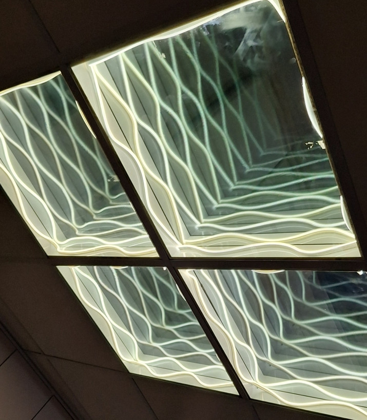 تایل نوری بینهایت از همون لحظه اول نگاه رو میدزده. طراحی مینیمال اما فوقالعاده جذابش باعث میشه بهجای یک تایل ساده سقفی، با یک اثر هنری مدرن مواجه باشید. افکت آینهای و نور بیانتهاش دقیقاً همون چیزیه که فضا رو لوکس، متفاوت و چشمگیر میکنه؛ مخصوصاً تو محیطهایی مثل سالن پذیرایی، لابی، مزون، سالن زیبایی و حتی اتاق خوابهای خاص.